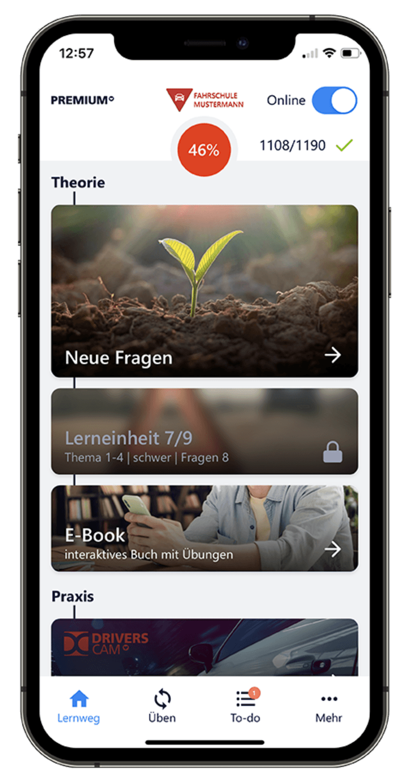 Erfolgreich angemeldet? Dann nehmen wir dich ab hier an die Hand und bereiten dich im Unterricht sowie mit Hilfe unserer App bestens auf deinen Führerschein vor. Übrigens beraten wir dich gerne bei allem, was nebenher noch für dich anfällt – von Antrag über Seh-Test bis Erste-Hilfe-Kurs.
